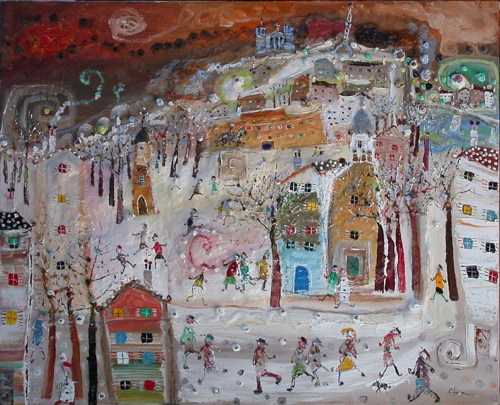 PORTFOLIO Sculpture Peinture Détails Confettis de magie, un Noël dans ma vie Huile sur toile - 130 x 162cm - 2025 Beau dimanche d'automne sur la Seine - Paris Huile sur toile - 130 x 162cm - 2024 Saint-Jean le soir, un soir, la ville en fête Huile sur toile - 80 x 80cm - 2024 Un dimanche à la campagne, le repas de famille Huile sur toile - 46 x 55cm - 2024 Banlieue la vie Gouache sur papier - 100 x 80cm - 2024 L'homme à la pipe Gouache sur carton - 200 x 200cm - 2024 Vue sur mer, la Côte d'Azur Huile sur toile - 130 x 162cm - 2023 Des étoiles dans la tête, les rives de Monsieur Bocuse Huile sur toile - 162 x 130cm - 2023 Souvenir américain Huile sur toile - 130 x 162cm - 2023 La passion d'un soir, Venise Huile sur toile - 130 x 162cm - 2023 Haut dessus ses toits la mer folle de joie Huile sur toile - 162 x 130cm - 2023 La piste rouge Gouache sur papier - 50 x 60cm - 2023 Sur les ailes de ta ritournelle. Bellecour Huile sur toile - 81 x 100cm - 2022 La fin du jour, le ciel s'embrase Huile sur toile - 80 x 80cm - 2022 Des étoiles dans la tête, à bientôt Monsieur Bocuse Huile sur toile - 50 x 61cm - 2022 Blanches vacances Huile sur toile - 65 x 81cm - 2022 Spirale barge ta joie fait loi Huile sur toile - 162 x 130cm - 2021 Le quartier du bon Dieu Ainay Huile sur toile - 65 x 81cm - 2021 La photo de classe Huile sur carton - 52 x 72cm - 2021 La pêche aux souvenirs. Colliour Huile sur toile - 40 x 40cm - 2021 La Seine m'enmmène Huile sur toile - 80 x 80cm - 2020 Des traces de soleil dans la neige Huile sur toile - 50 x 50cm - 2021 Les grands dimanches en bord de Saône Huile sur toile - 130 x 95cm - 2019 Touché en plein coeur par un soleil éternel (Afrique) Huile sur toile - 97 x 130cm - 2019 La nuit du huit décembre Huile sur toile - 114 x 146cm - 2019 Venise de nuit Huile sur toile - 146 x 114cm - 2019 Les palaces de la Côte d'Azur Huile sur toile - 2019 Lyon Dessin - 50 x 65cm - 2015 Tête noire Tête d'or mon Lyon d'Afrique Huile sur toile - 65 x 81cm - 2015 Les bleus de l'Âme, Bretagne Huile sur toile - 92 x 73cm - 2015 Fête foraine, comme les rues t'aiment Huile sur toile - 114 x 146cm - 2015 Le Soleil prend le large Huile sur toile - 60 x 73cm - 2015 Plein soleil que la vie, Paris Huile sur toile - 130 x 162cm - 2015 Les confettis du Soleil Huile sur toile -73 x 60cm - 2015 Chanson d'arrière saison Huile sur toile - 130 x 195cm - 2015 Buffavent, soleil couchant Pastel à l'huile sur papier - 43 x 60cm - 2015 Lyon Presqu'île Gouache - 44 x 80cm - 2015 Ballade pour Utrillo Huile sur toile - 54 x 65cm - 2015 Petite montèe des Solitudes Huile sur toile - 54 x 65cm - 2014 L'atelier Fusain sur papier - 50 x 65cm - 2014 Hortense Huile sur panneau - 10 x 10cm - 2014 Faustine Huile sur panneau - 10 x 10cm - 2014 Eugénie Huile sur panneau - 10 x 10cm - 2014 Asie, si loin de toi si loin de moi Huile sur toile - 130 x 195cm - 2013 Ciel de soir Huile sur toile - 65 x 81cm - 2014 Madame tartignolle Gouache sur papier - 23 x 12cm - 2014 Les conscrits. Villefranche-sur-Saône Huile sur toile - 73 x 60cm - 2010 Guignol à l'horizon, Lyon- st-Georges Huile sur toile - 60 x 73cm - 2010 St-Paul, Lyon Gouache sur papier - 56 x 76cm - 2010 Place des Vosges, Paris Gouache sur papier - 56 x 76cm - 2010 Les péniches, Paris Gouache sur papier - 56 x 76cm - 2010 La fête foraine Gouache sur papier- 56 x 76cm - 2010 Eblouissement d'un soir, Bretagne Huile sur toile - 60 x 73cm - 2009 Par ici il y a de la vie Huile sur toile - 60 x 73cm - 2009 la ville folle de joie Huile sur toile - 60 x 73cm - 2009 La dernière gorgée de soleil Huile sur toile - 100 x 100cm - 2009 Sur le chemin de l'atelier ma balade adorée Huile sur toile - 97 x 130cm - 2007 Virevolte sur la Côte Huile sur toile - 38 x 46cm - 2006 Balade du cote des docks Pastel à l'huile sur papier - 52 x 58cm - 2005 La Côte Sauvage-Bretagne Pastel à l'huile sur papier - 39 x 65cm - 2005 Load more